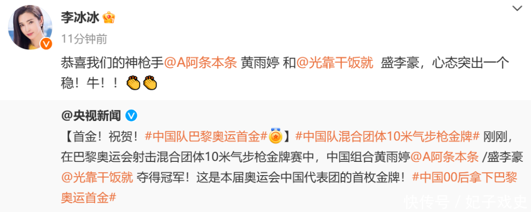 话说纪念,服气接下来还会有许多的明星王人会抒发我方关于奥运健儿夺冠的道贺,这样蹙迫的时刻,关于每一个中国东谈主来说王人是莫大的荣誉,再次恭喜两位零零后冠军。